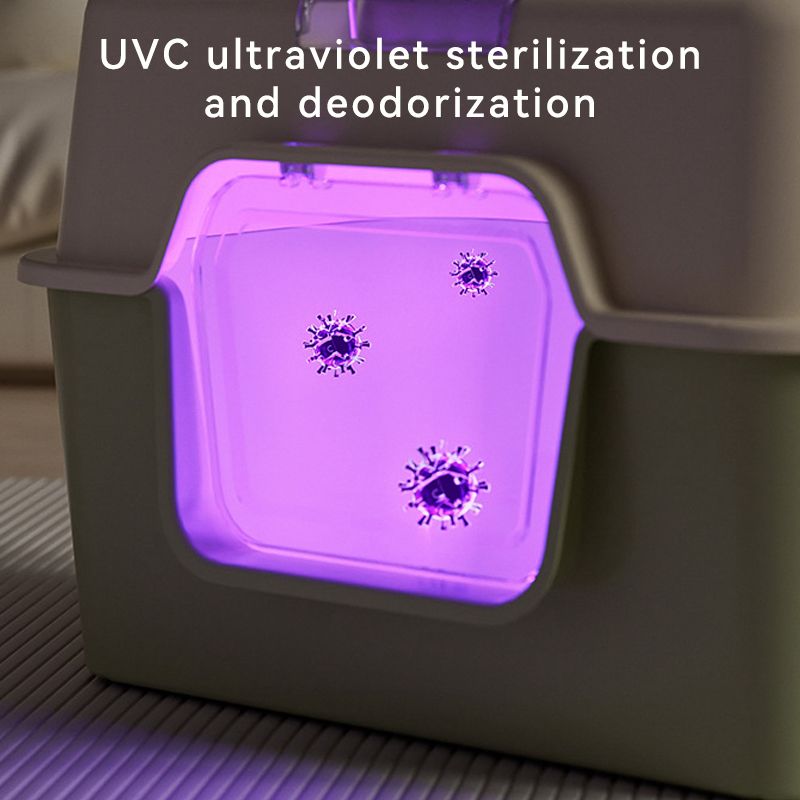 ليتر بوكس مغلق بتصميم عملي ومريح للقطط، مزود بضوء الأشعة فوق البنفسجية (UV) للمساعدة في تقليل الروائح وتعقيم منطقة الاستخدام بعد خروج القطة.