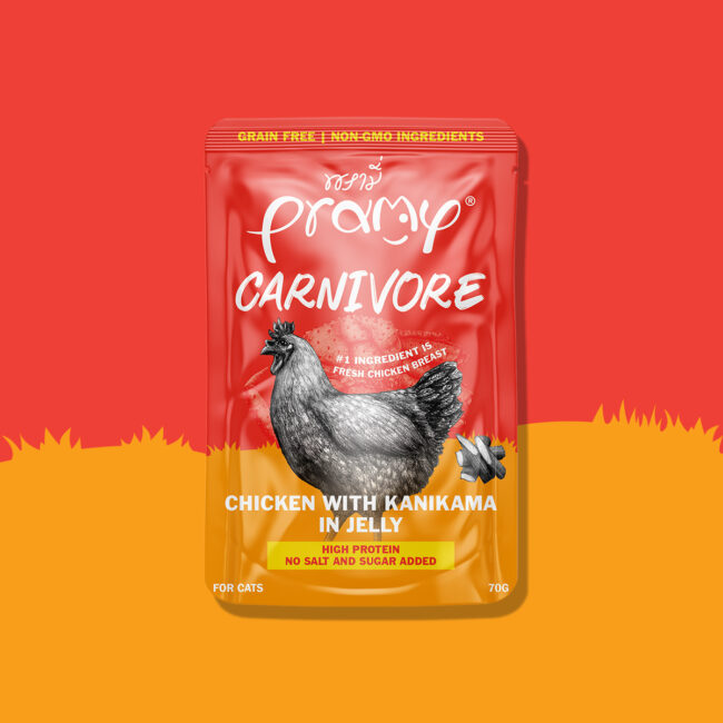 لحم الدجاج (صدر منزوع العظم ، منزوع الجلد) ، كانيكاما ، نشا التابيوكا المعدل ، مسحوق الجيلي ، النكهة الطبيعية ، الفيتامينات ، المعادن ، صمغ الزانثان ، الفركتوليغوساكاريد (FOS) ، التورين ، زيت السمك ، فيتامين ه