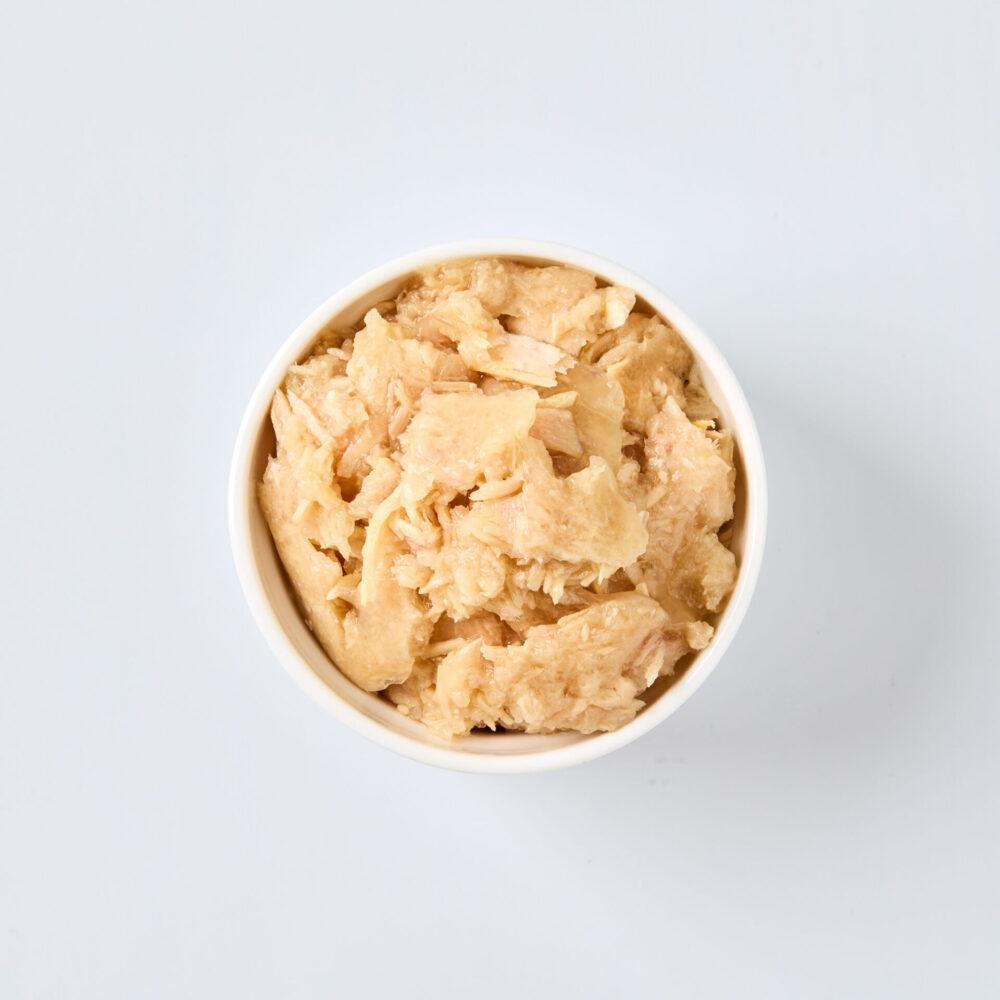 لحم التونة، لحم الدجاج، نشا التابيوكا المعدل، نكهة طبيعية، ألياف السليلوز، زيت بذر الكتان، مسحوق الجيلي، التورين، فيتامين هـ، فركتو أوليجوساكاريد (FOS)، مستخلص الخميرة، زيت زهرة الربيع المسائية